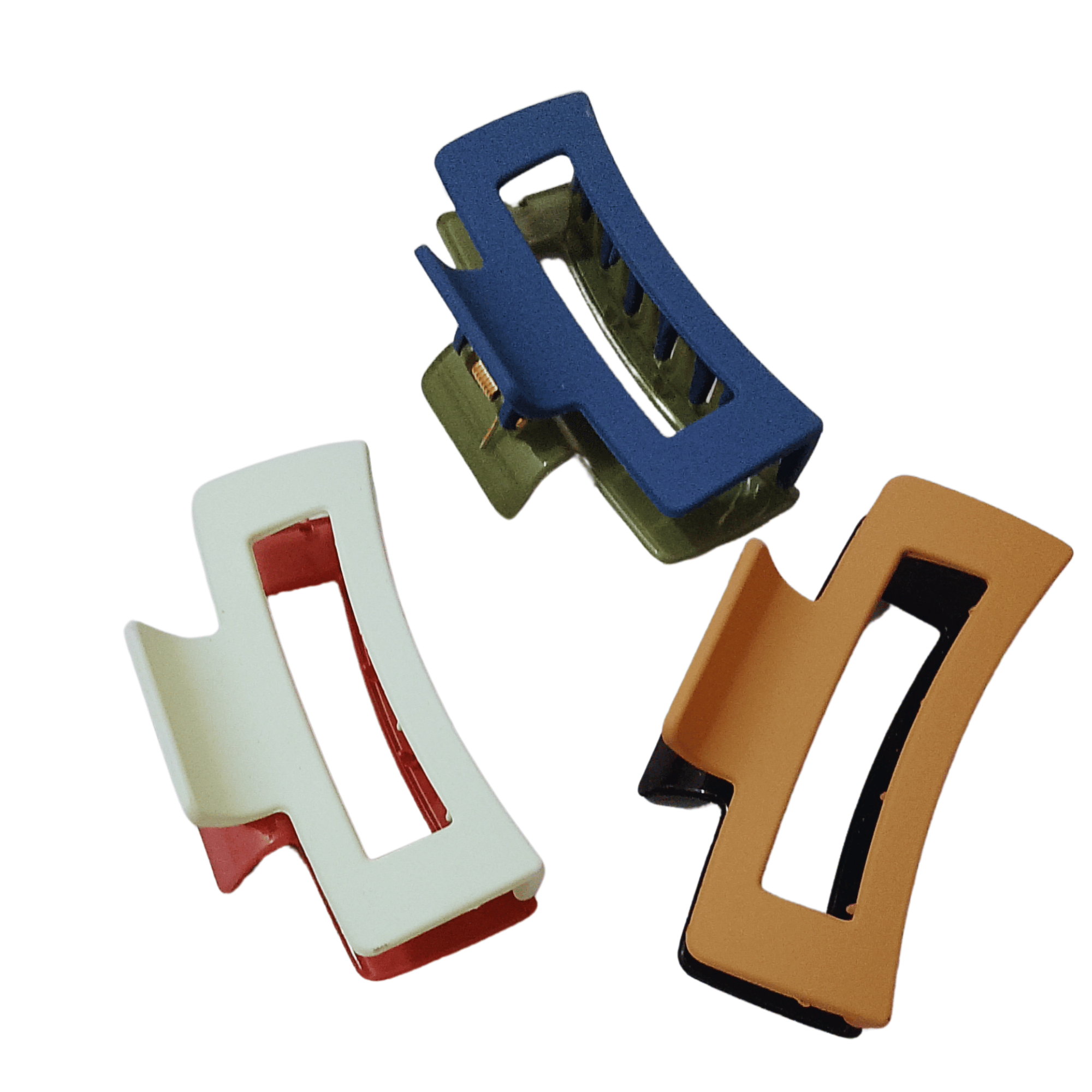 Introducing our large matte hair claw clips, designed to elevate your hairstyle with elegance and practicality. Available in a set of three, these dual-color clips feature neutral shades that effortlessly complement any outfit.