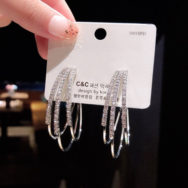 Discover the beauty of our classic trendy delicate hoop earrings, which are meticulously inlaid with created white crystals. These earrings exude a unique charm, making them a perfect accessory for any occasion. Designed for daily wear, they beautifully catch the eye in any crowd.